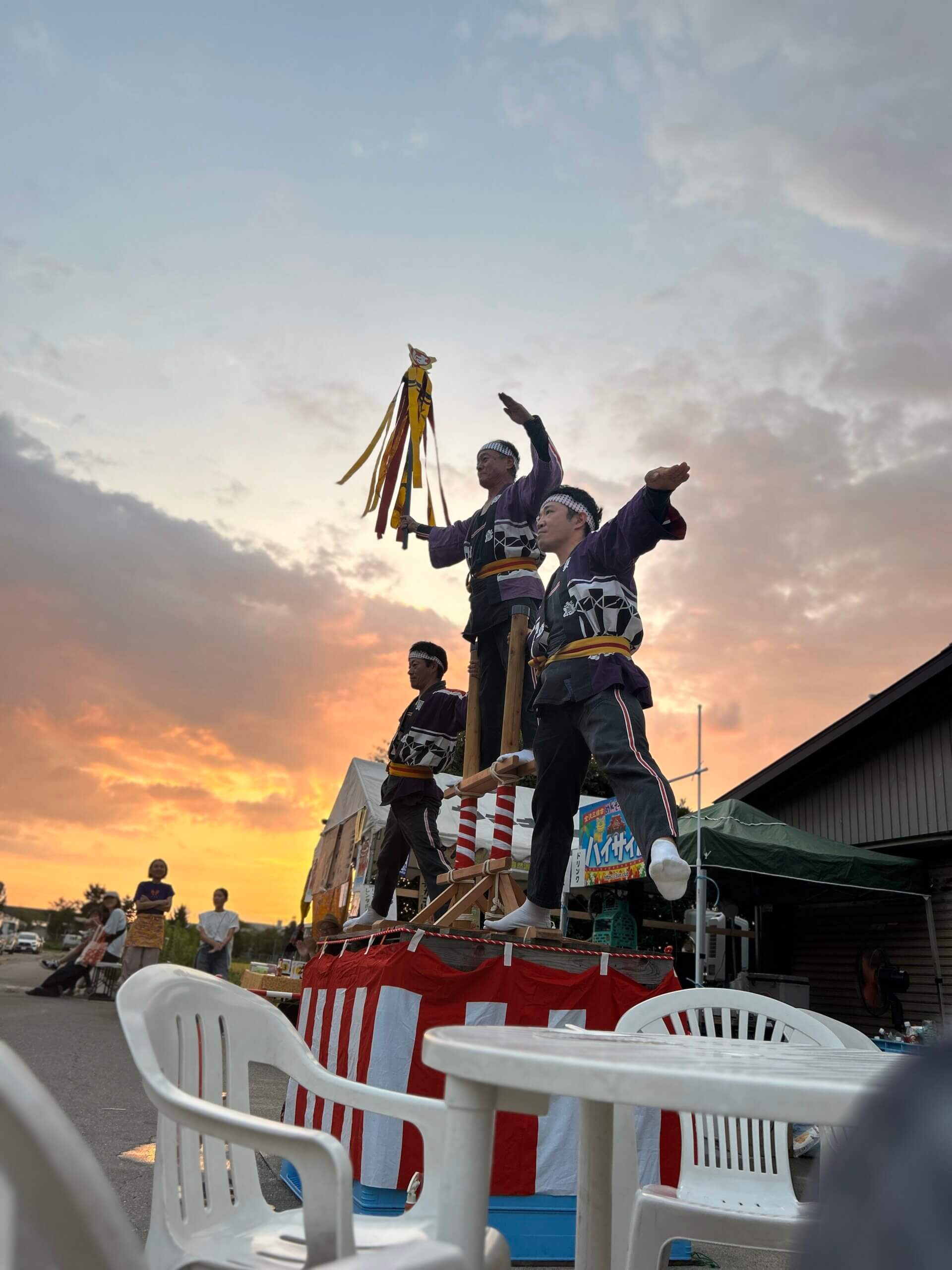 夕暮れには、伝統のはしご乗り演舞がありました。