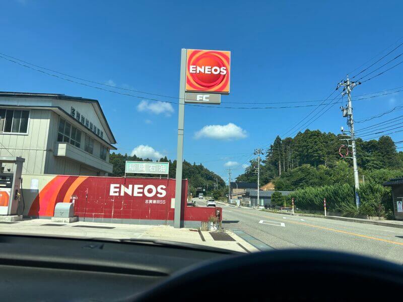 ナビで調べつつ、徳田大津ICで降りてすぐのENEOSに駆け込みました。遠くから灯りが見えたときの安堵感!