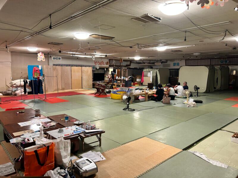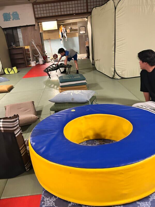 もとやスーパーさんはボランティアや学生の宿泊先としても場所を開放されています。