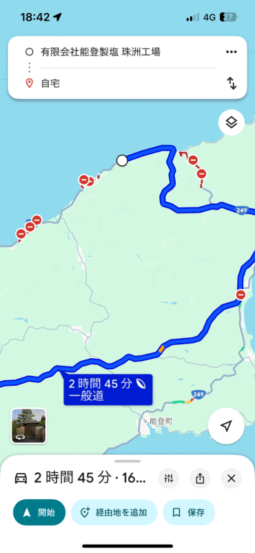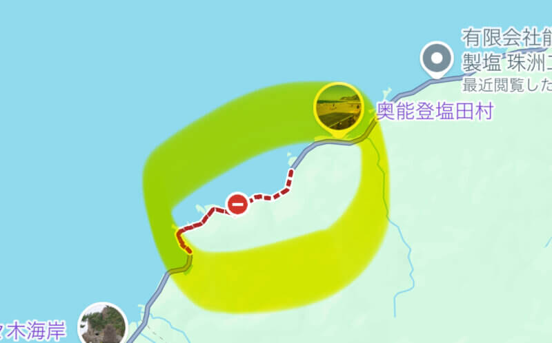 このgooglemapで通行止めとなっているところがもう通れるのだとか。これは、地元の方と知り合いじゃないとわからないですね。