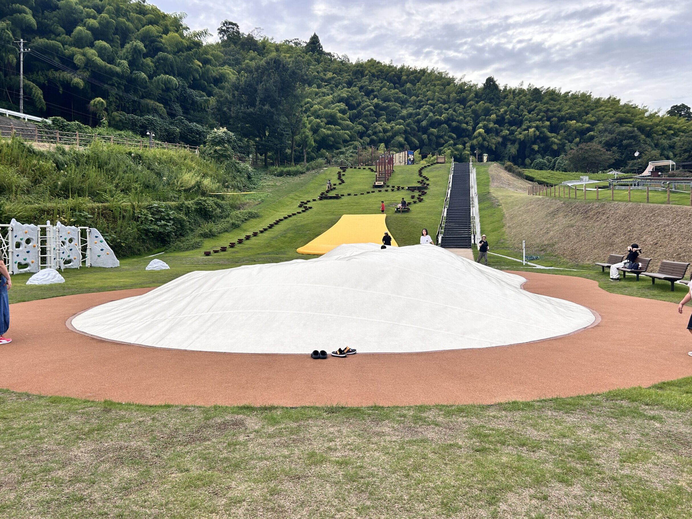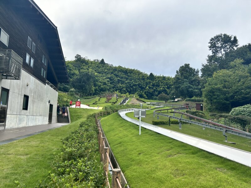 以前はここで「芝滑り」ができたそうで、ソリやヘルメットを貸してもらって滑るスタイルだったみたいです。2014年ごろのブログにはまだ写真が残っていましたが、私が上の子と遊びに行くようになった2015年以降は、実際に使われているのを見たことがありませんでした。やっぱり摩擦熱で怪我をする危険があったり、スピードが出すぎるなどの理由で使われなくなったようです。