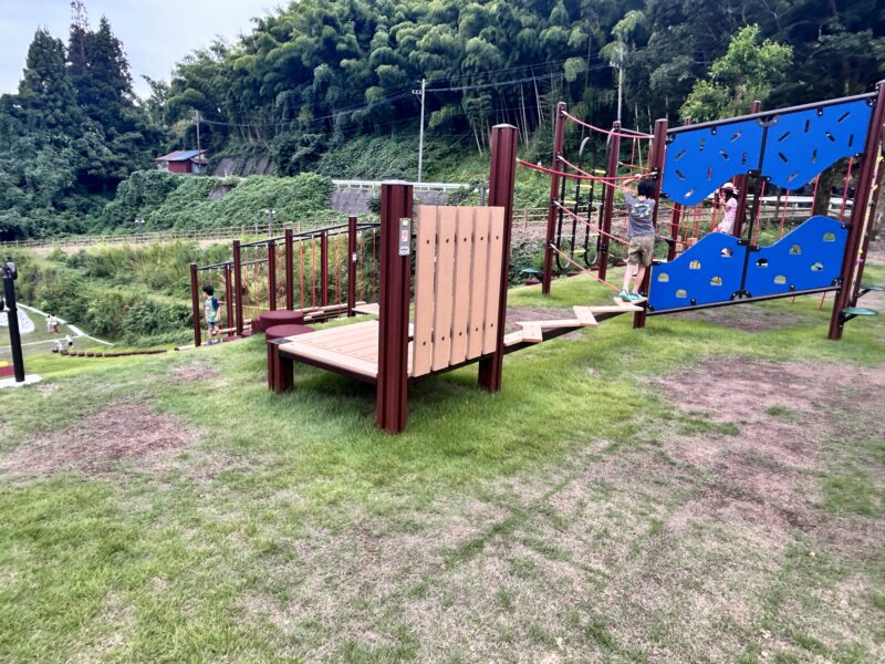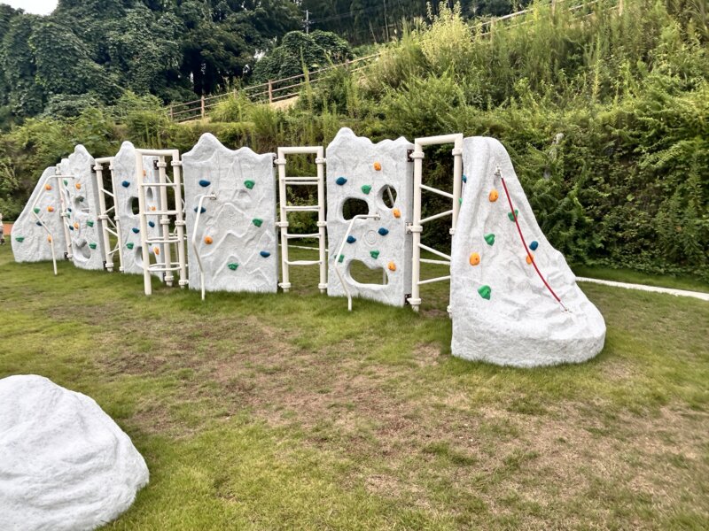 ロッククライミング風の遊具はすこし小さい子向けかな。